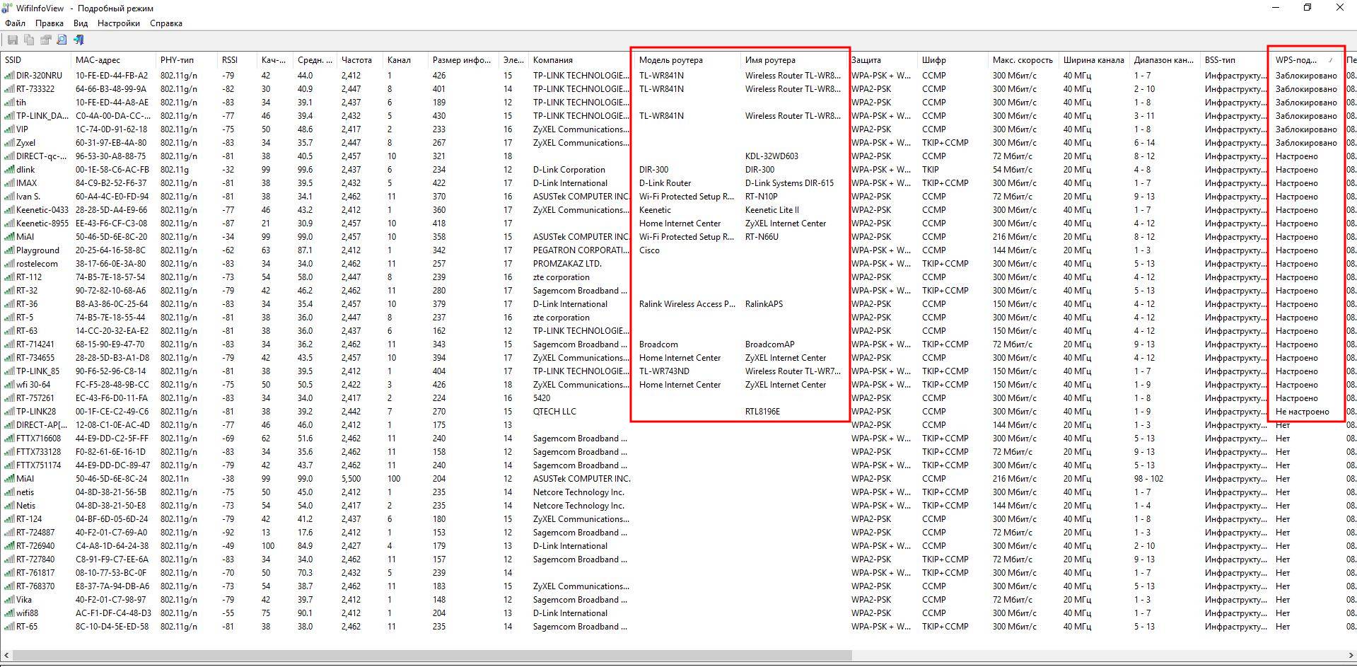 На скриншоте выше видно, что данная информация доступна только для точек доступа с WPS. Хорошая новость в том, что WPS может быть в любом состоянии: заблокирован, настроен, не настроен – информация о модели Точки Доступа утекает всё равно!