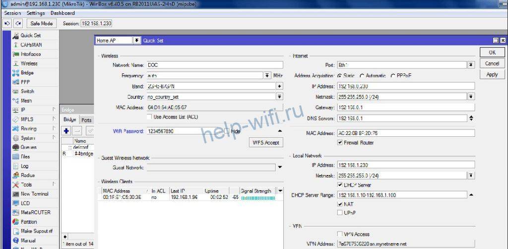 Роутеры MikroTik настраиваются через меню QuickSet.