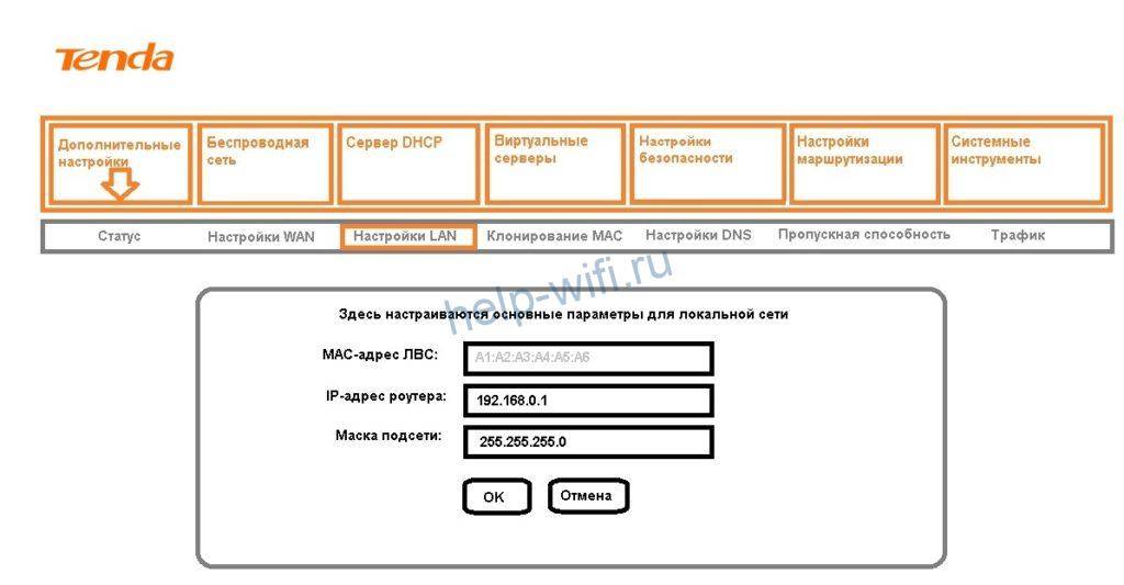 В веб-интерфейсе Tenda параметры локальной сети расположены в дополнительных настройках. Для доступа к ним нужно открыть «Настройки LAN».