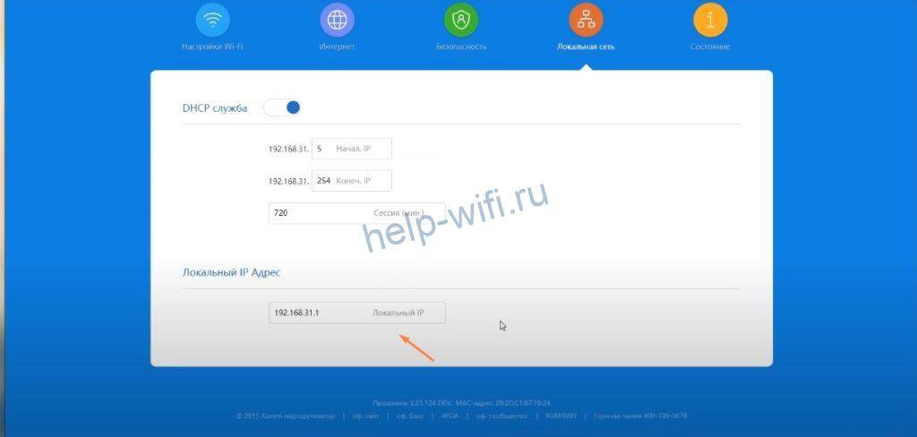 Найдите стройку «Локальный IP». Там можно изменить адрес. Обязательно сохраните сделанные изменения.