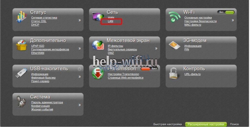 В голубом интерфейсе Smart сначала нужно открыть раздел «Дополнительные настройки», а затем подраздел LAN.