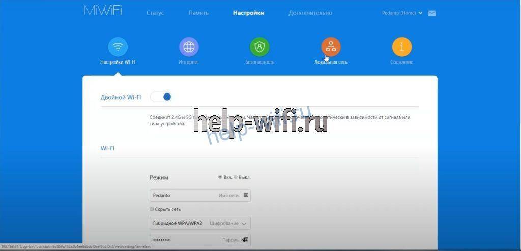 В стандартном бирюзовом интерфейсе настройки IP-адреса осуществляются через раздел «Сеть» подраздел LAN.