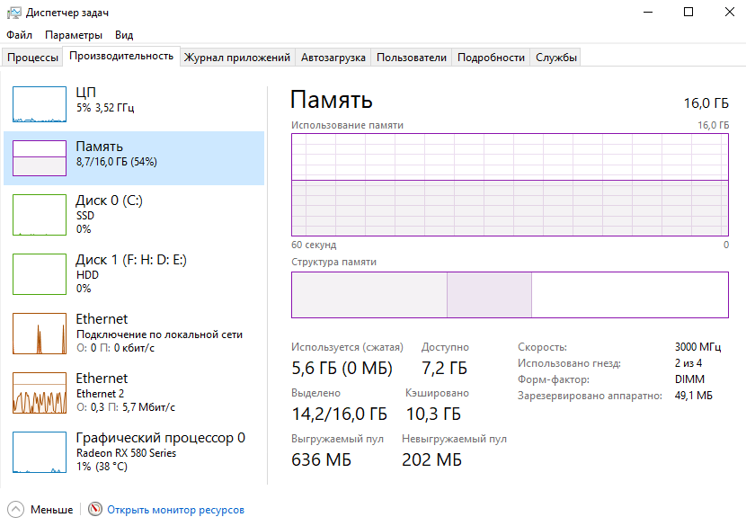 Диспетчер задач — это многофункциональный инструмент в виндовс. Он может помочь пользователю в закрытии “незакрывающегося” окна, отключения автозагрузки приложений и, самое главное для нас, в получении данных об объеме ОЗУ.