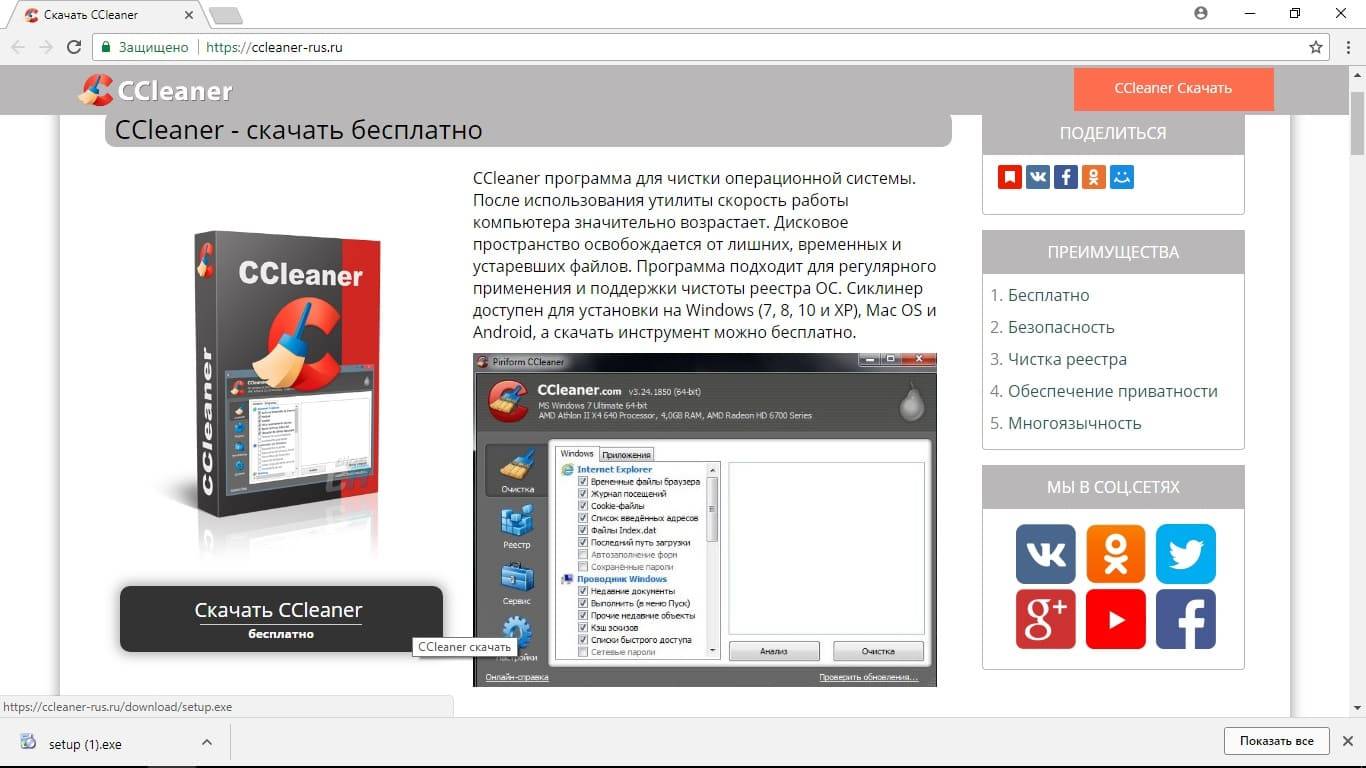 Если у вас ещё не установленная эта программа, тогда вы можете найти и установить её к себе на компьютер. В поиске браузера введите запрос CCleaner и скачайте любую версию желательно через какой-либо надёжный торрент.
