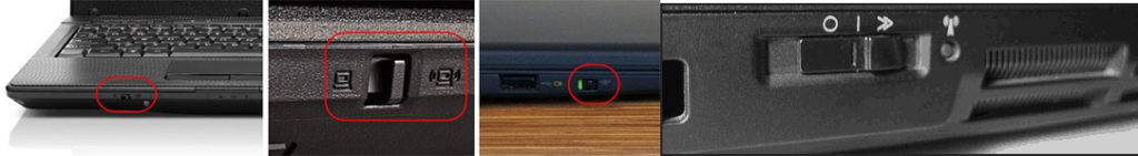 - Найти кнопку включения wi-fi. На большинстве ноутбуков ASUS она может находиться в разных местах нижней части корпуса ноутбука. Кнопка в виде ползунка располагается под характерным значком беспроводной связи либо впереди, прямо под клавиатурой или сбоку рядом с дисководом. Но на некоторых моделях возможны и другие варианты месторасположения кнопки;