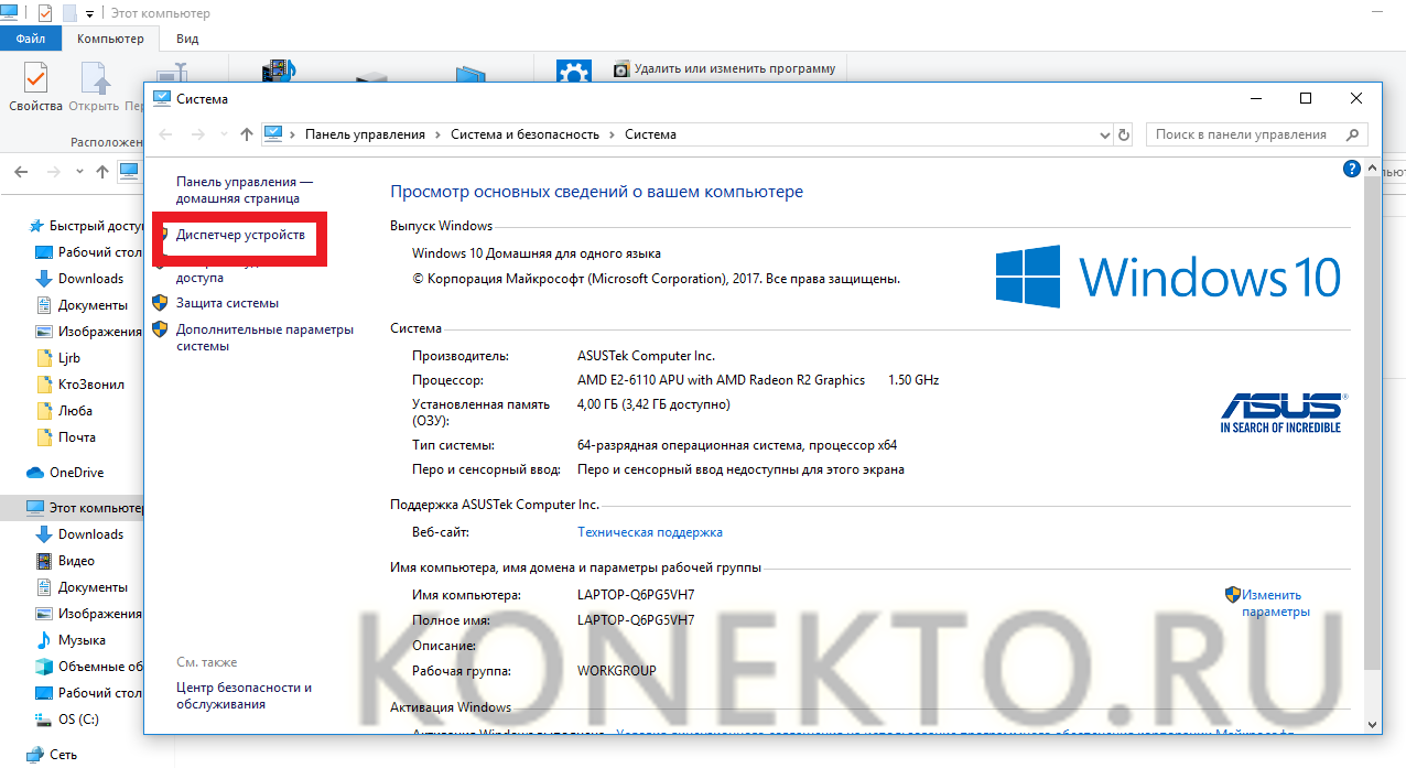 Выбираем «Диспетчер устройств».