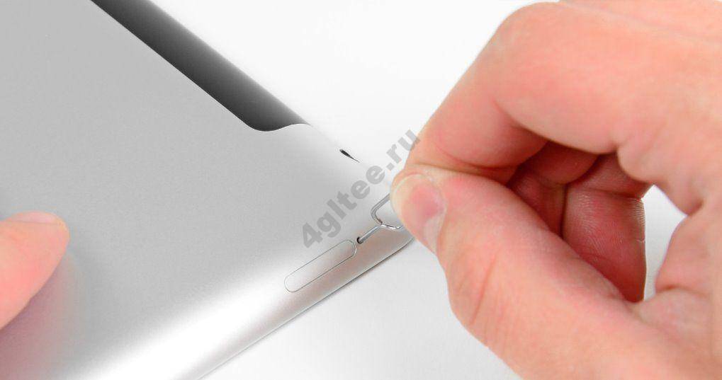 Обратите внимание на устройство системы доступа к гнезду, возможно, понадобится воспользоваться специальным ключом-скрепкой, идущим в комплекте с планшетом. Как вставить симку в планшет таким ключом? Рядом с гнездом будет находиться небольшое отверстие, при надавливании ключа в это отверстие слот под симку выдвинется, далее необходимо разместить SIM в выдвинувшемся специальном лотке