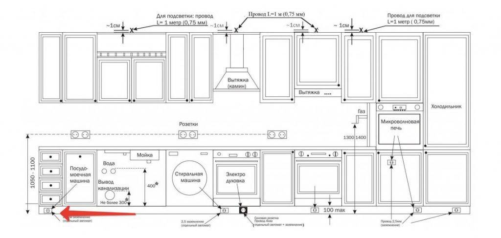 Она должна располагаться на высоте 25-30 см от пола и отводиться через дифавтомат.