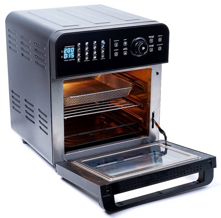 В комплектацию некоторых моделей входят сетчатые противни для сушки фруктов и фритюра, дополнительные решётки, шампуры для шашлыков. Чем больше функций у прибора, тем дороже цена. Перед покупкой нужно решить, какими опциями будете пользоваться. Покупать многофункциональный аппарат и использовать пару функций не рентабельно.