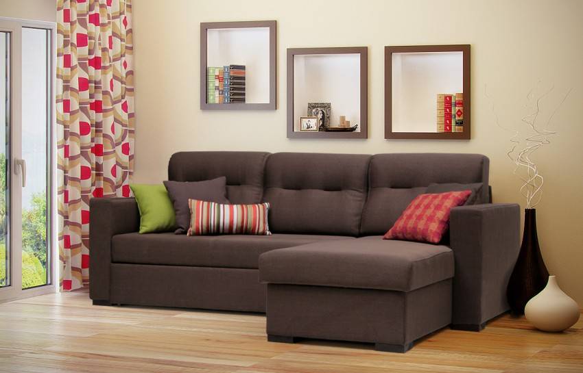 Коричневый диван-аккордеон, как на фото, будет великолепно выглядеть в интерьере, в котором грамотно использованы оттенки. Поговорим о самых удачных комбинациях: