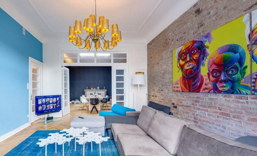 Такая комбинация является оригинальной. Кремовый диван или диван в другом нейтральном колере гармонично будет смотреться на фоне желтых, голубых и красных стен.