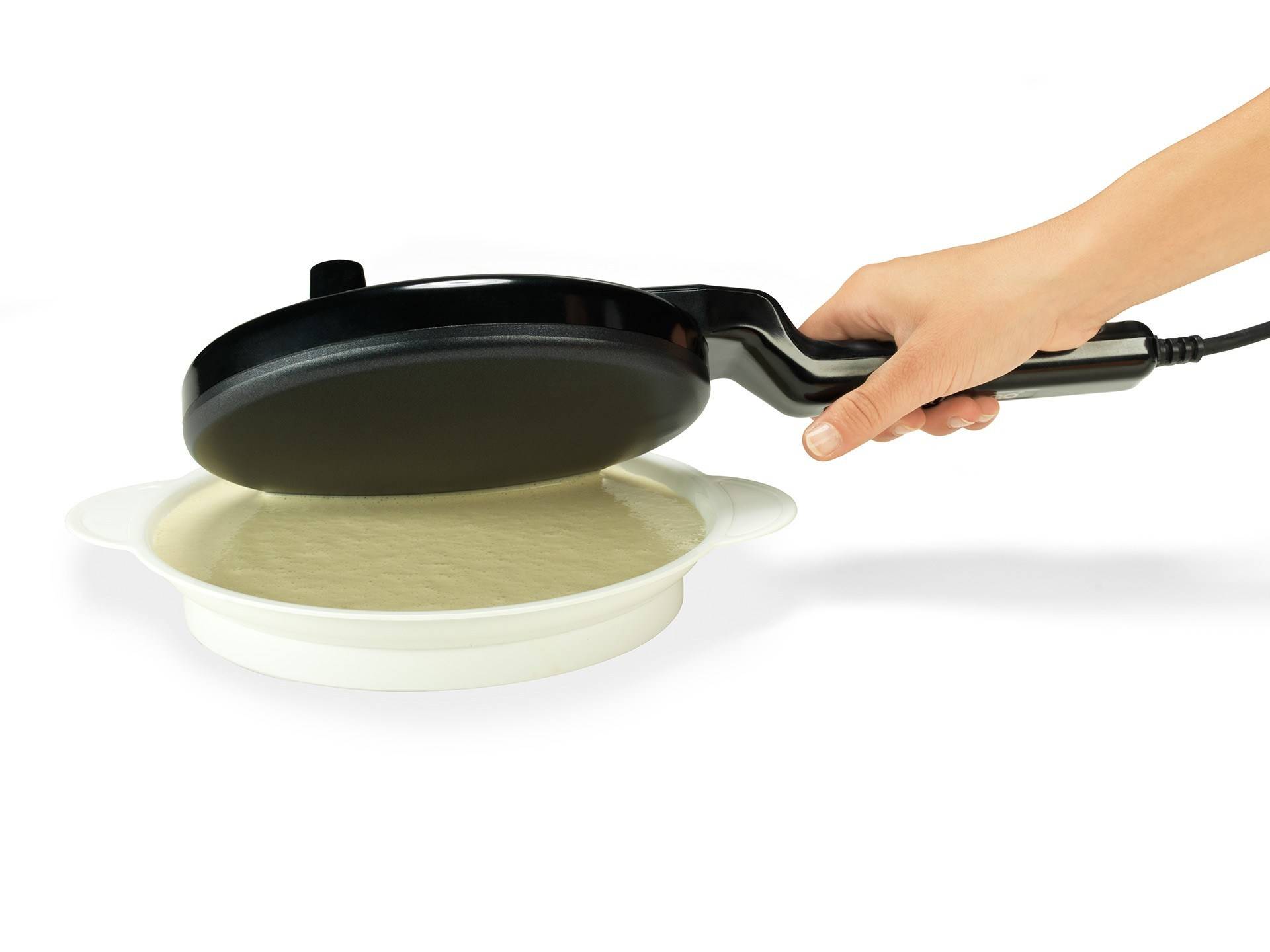 Простая в использовании модель с диаметром рабочей поверхности 20 см и антипригарным покрытием позволяет быстро и легко жарить тонкие, ровные блинчики практически без масла, которые никогда не пригорят.