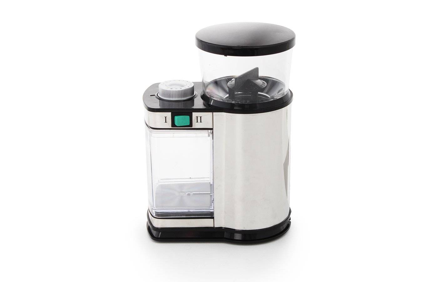 Жерновая кофемолка, с помощью которой удастся перемолоть большое количество зерен. Обладает функцией защиты от случайного включения. Вместимость съемной емкости для зерен составляет 120 грамм. Непрерывно работает до одной минуты. Этого времени хватит, чтобы получить сырье для приготовления двенадцати чашек кофе.