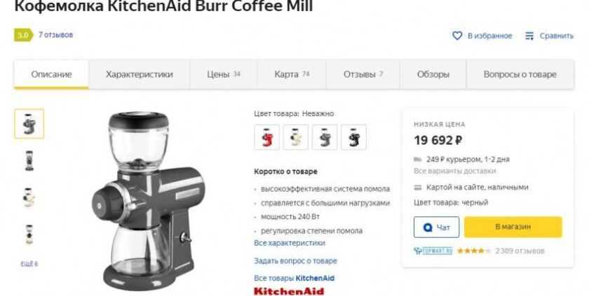 Главный недостаток приспособления – цена. Средняя стоимость кофемолки достигает 10000 руб.