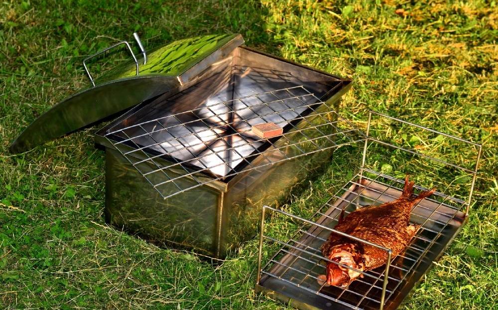 Такой вид коптильни имеет скомные размеры и прекрасно выручает в походах, в вояжах на рыбалку, в общем, любой вылазке на природу.