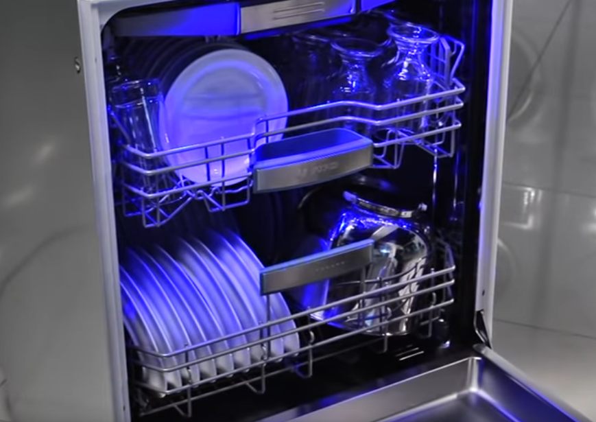 - Подсветка камеры. Освещение бункера позволяет более удобно загружать и выгружать столовые приборы и утварь.