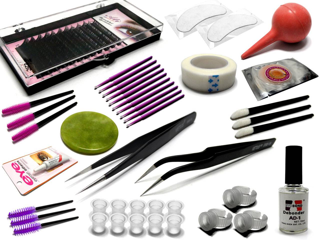 В каком количестве будет закуплен рабочий инструмент, не зависит от того, на каком уровне проводится наращивание. Делается ли процедура себе, маме, подружке, либо проходит платное наращивание, перечень материалов и оборудования для наращивания ресниц следующий: