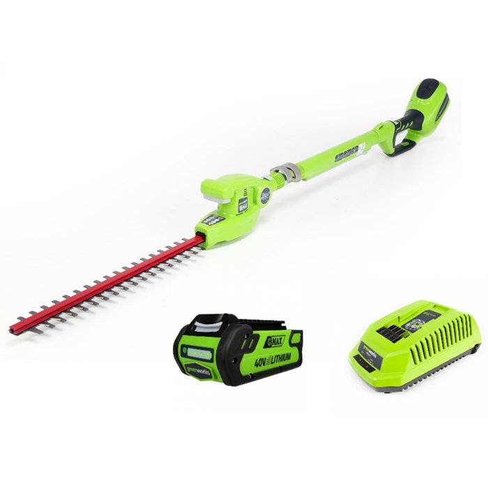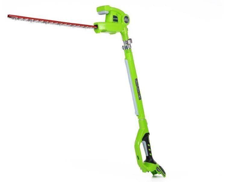 Высотный кусторез телескопического типа, работающий на аккумуляторной батарее. Применяется для обрезки и формировки декоративных кустарников и крон деревьев. Небольшие весовые габариты, эргономичная прорезиненная рукоятка и ножевище, имеющее 7 режимов наклона. Главной изюминкой данного агрегата является раздвигающаяся штанга, благодаря которой можно с легкостью сформировать крону растений на высоте до 5 метров. Кусторез отлично применяется для обработки масштабных объектов. Средняя цена: от 8000 рублей.