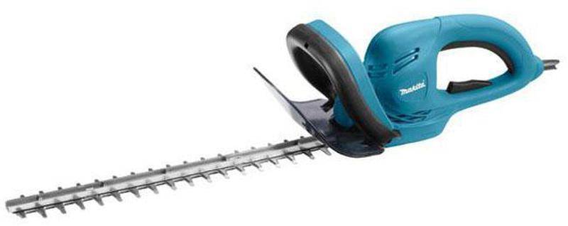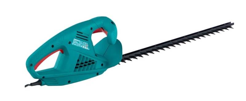Электрическая модель, работает от сети, оснащена двухсторонним металлическим ножом и пластиковым коробом с 2-мя удобными ручками. Она предназначена для обработки длинных и широких кустов. Максимальная толщина реза – 16 мм. Благодаря мощности мотора – 400 Вт, устройство обладает высокой производительностью.