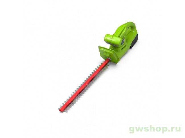 Данная модель работает от сети, пластиковый корпус оснащен двухсторонним ножом длинной 56 см. В набор поставки входит руководство по эксплуатации и гарантийный талон. Мощный двигатель на 500 Вт выдает высокую производительность. Небольшой вес (2 кг 500 г) не даст пользователю почувствовать усталость в руках, а защитный кожух обеспечит ему полную безопасность в работе.