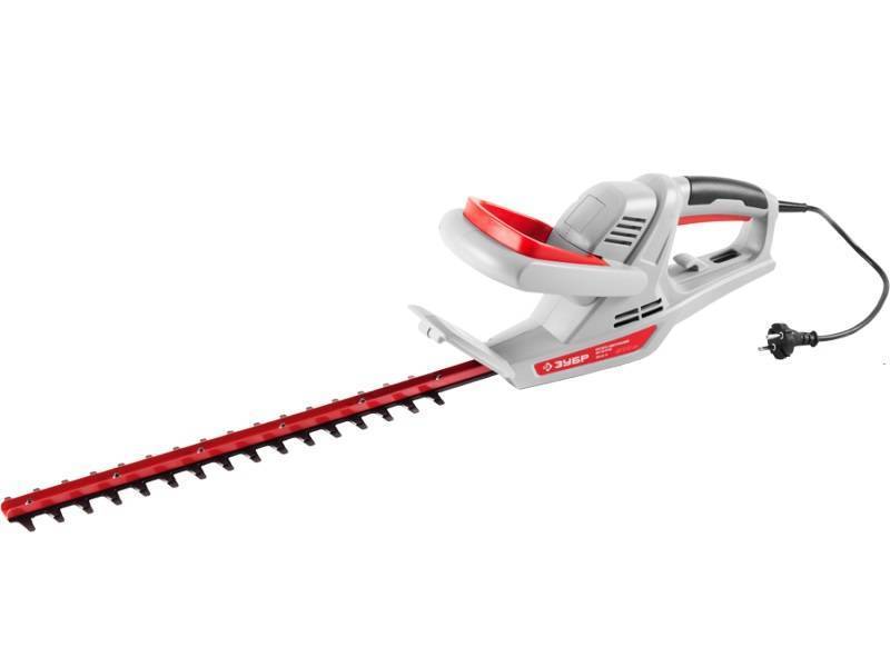 Электрические кусторезы марки «Зубр» производятся отечественной ЗКЭ-40-18 — недорогой и доступный кусторез, пусть в его технических характеристиках нет ничего выдающегося, но со своей задачей этот инструмент справляется. За скромную цену вы получите двигатель с приличной мощностью в 0,5 кВт, 40 см нож из стали высокого качества, комфортные рукоятки и относительно небольшой вес инструмента в 2,9 кг.В кусторезе есть все, что нужно для защиты владельца во время эксплуатации — встроенный в корпус щиток, остановка ножей при потере контроля и блокиратор случайного включения. Если большим количеством свободных финансов вы не располагаете, то стоит присмотреться к электрическому кусторезу «Зубр» ЗКЭ-40-18, может статься, что устройства подороже вам и не понадобится.