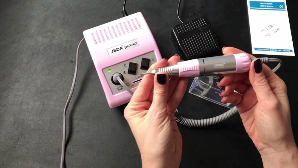 Когда устройство подключено к сети, электромоторчик вращает насадку с высокой скоростью (до 60 тысяч об/мин). Аккуратными прикосновениями насадки к коже или ногтю мастер выполняет свою работу: спиливает ноготь, обрабатывает валики и кутикулу.