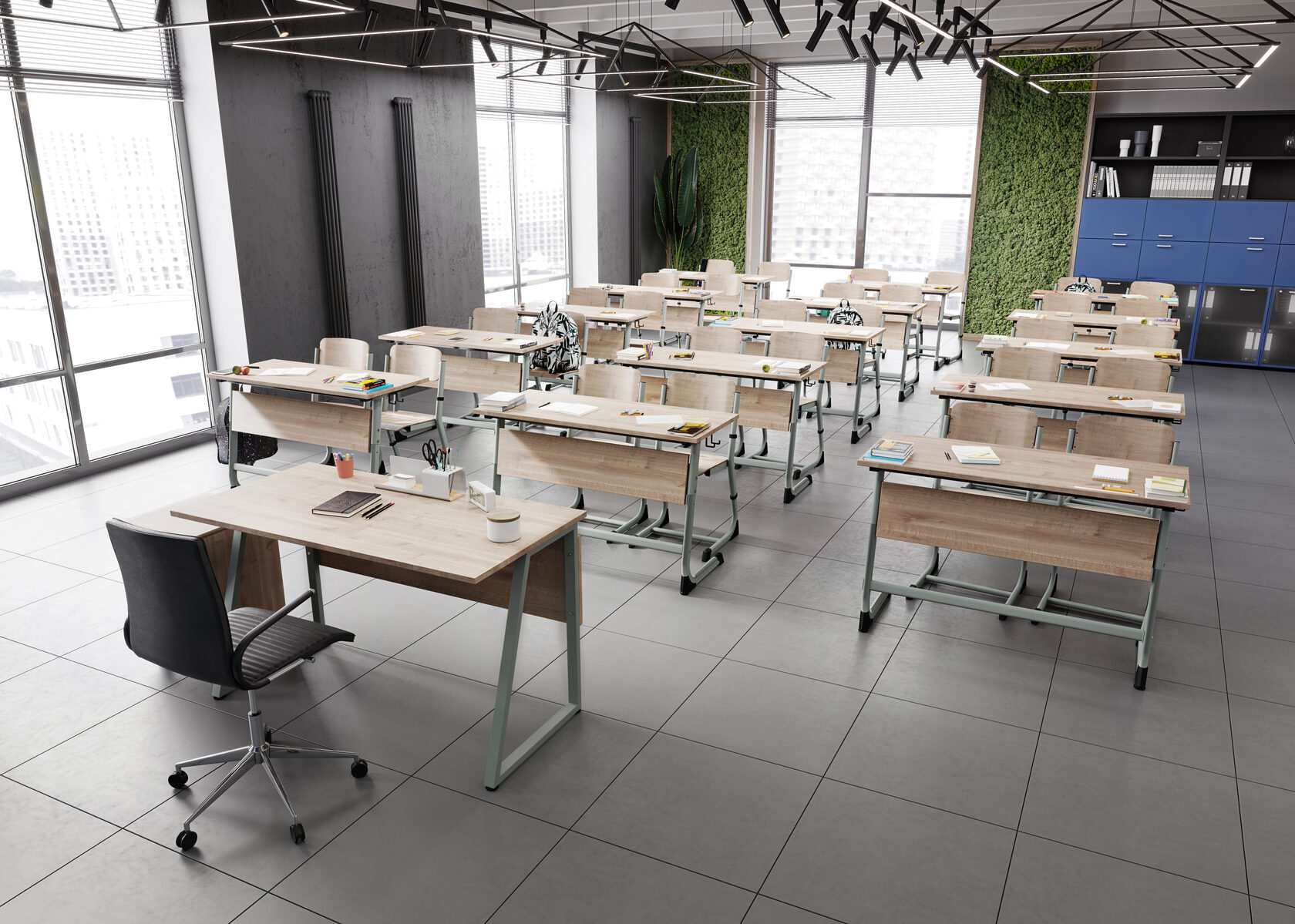 - Кабинеты для учителей: это не только рабочее место, но и место для хранения учебных материалов.