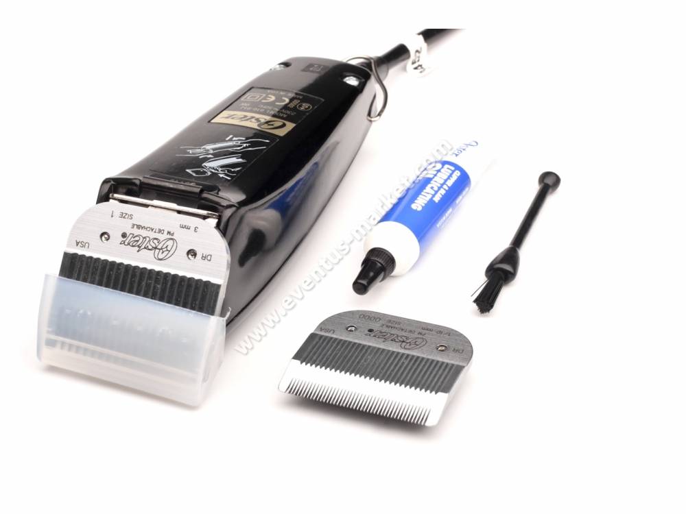 - комплектация – кисточка для очистки, масло, защитный чехол для ножей, П-образная расческа.