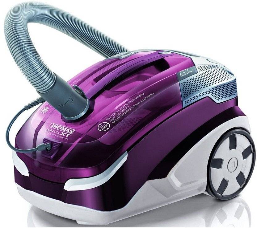 Компактный моющий пылесос с уникальным аква-фильтром Thomas Aqua-box и фильтром HEPA 12. Потребляемая мощность 1700 Вт, 3-х ступенчатый электронный регулятор мощности всасывания до 260 Вт. Уровень шума 78 дБ. Вес аппарата 8 кг. Длина сетевого кабеля 8 м. Радиус действия 12 м. Наличие 4 колес не создают проблем для маневров.