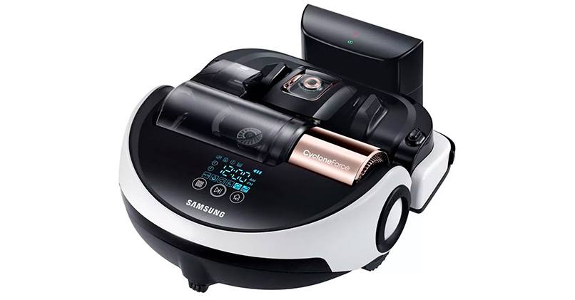 Робот-пылесос Samsung VR10M7030WW очищает твердые поверхности и ковровые покрытия до 1,5 см. Времени работы от одного заряда хватает на уборку двухкомнатной квартиры. Удобно, что в комплекте идет пульт дистанционного управления, не нужно каждый раз подходить к пылесосу, чтобы поменять направление или программу.