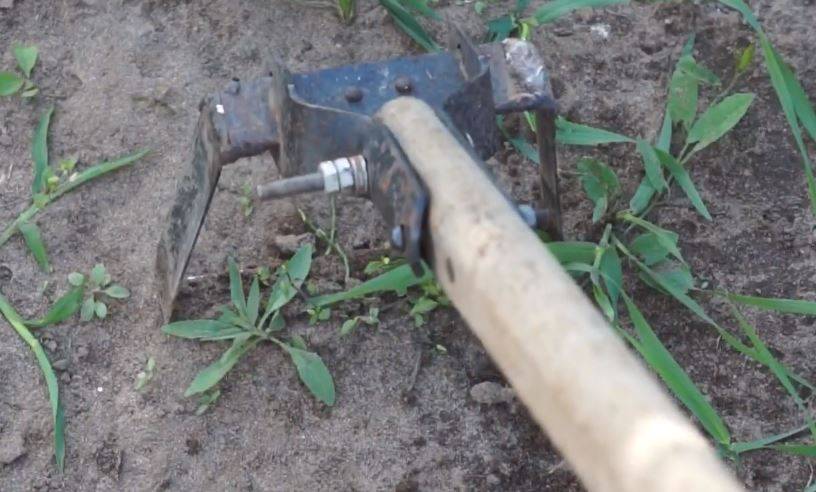 - вставляем зубцы в землю, как бы заглубляя их в непосредственной близости к сорняку;