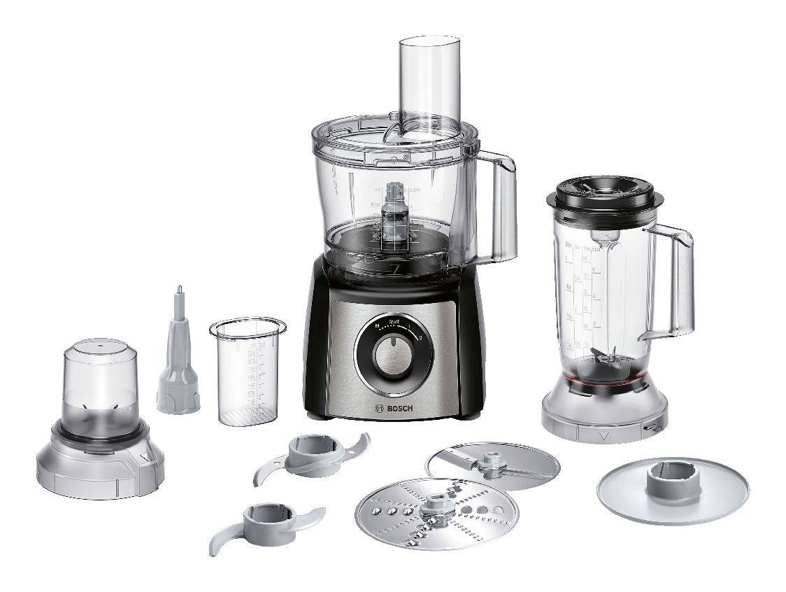 Модели кухонных комбайнов Bosch считаются одними из самых надёжных, долговечных вариантов. Оснащён четырьмя разнообразными насадками, при производстве которых применялись качественные материалы. Представляет собой стационарную машину с мощностью 800 Ватт. Используется для превращения овощей в пюре. Прекрасно измельчает продукты независимо от степени твёрдости.