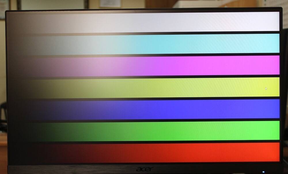 - цветные ячейки. Входят в группу аномальных, поскольку вне зависимости от вида сигнала цветовые каналы перекошены. Итоговое изображение имеет искаженный цвет. Белый виден на темном фоне, черный — на светлом, а цветной — на любой картинке. Чтобы проверить матрицу, пользуются эталонными заливками — синей, желтой, циан, маджентой и красной;