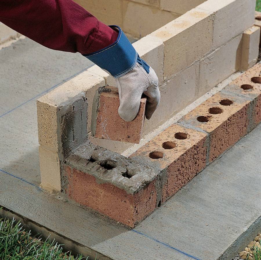 Перед кладкой кирпичи необходимо вымочить в воде не менее суток, чтобы они не впитали слишком много воды из раствора. Первый ряд кирпичей укладывается насухо. Последующие ряды в зависимости от выбранной схемы укладываются со сдвигом не менее, чем на треть кирпича. Стыки между кирпичами не должны совпадать, чтобы обеспечить максимальную прочность кладки.