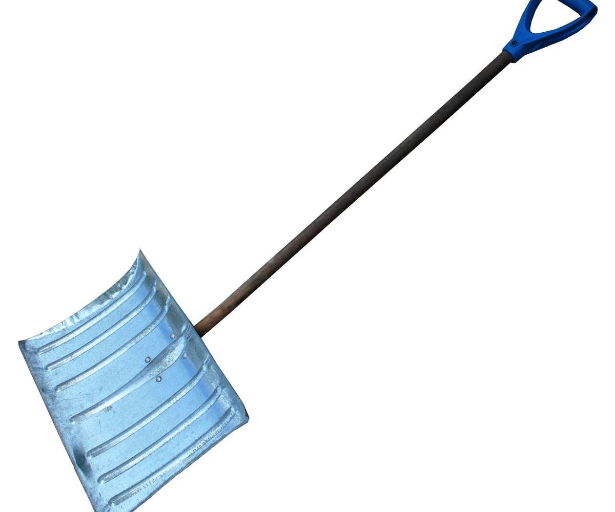 Большое полотно в виде ковша, которое изготавливается из легких материалов, типа пластика или алюминия к которому прикрепляется черенок. Используется для расчистки снега с тротуаров или дорог. Относится к разновидности совковых лопат, так как имеет схожие функции и внешний вид. Край полотна обработан металлической планкой для защиты от деформации. Есть лопаты такого вида с двумя черенками и очень широким полотном. Их часто называют скрепер. Они предназначены для очистки больших территорий от снега. Ковш такой лопаты имеет лыжи или колесики, помогающие скользить инструменту даже при сильной загруженности снегом. При работе на замерзшем снегу не следует использовать снегоуборочные лопаты. Для этого есть специальные инструменты – ледорубы иначе ваша лопата очень быстро выйдет из строя. Длина лопаты – 750-1600 мм, длина ковша составляет 275-800 мм и вес – 1-6 кг.