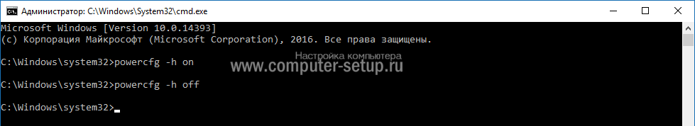 powercfg –h off – чтобы отключить гибернацию в windows 10