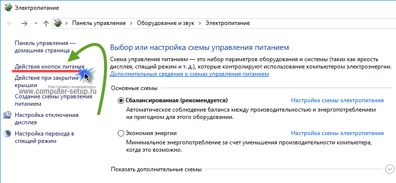 Слева в меню необходимо выбрать пункт «Действия кнопок питания»