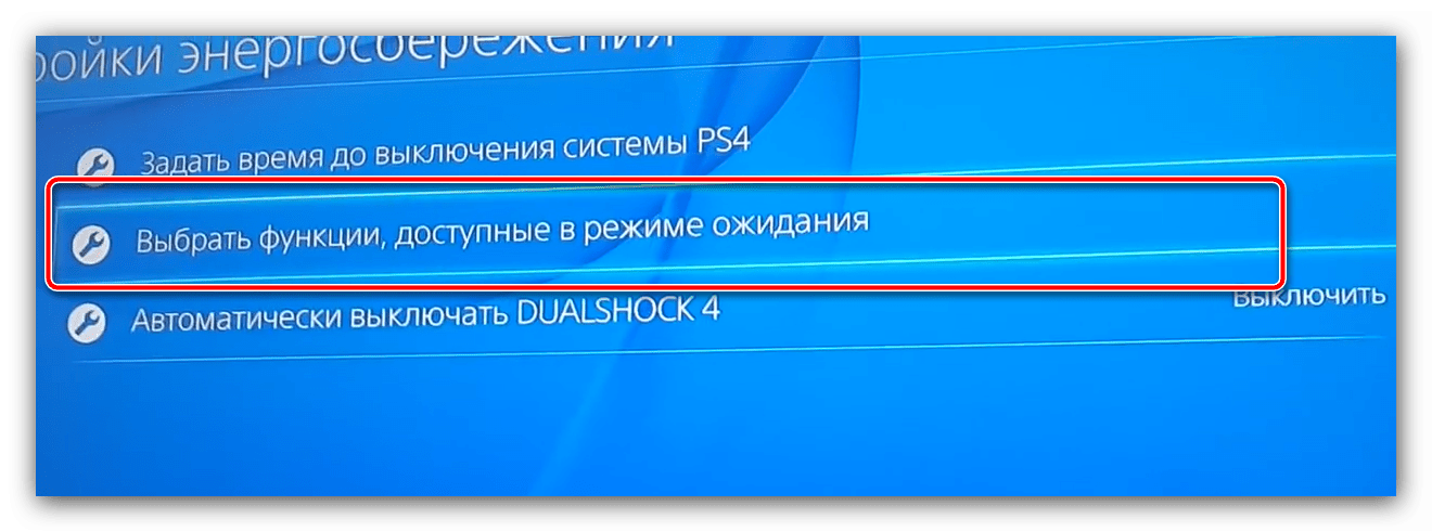 С помощью крестовины или левого стика выберите позицию «Питание от разъёма USB» и активируйте её нажатием на «Крест».