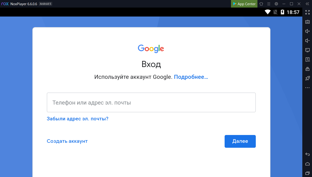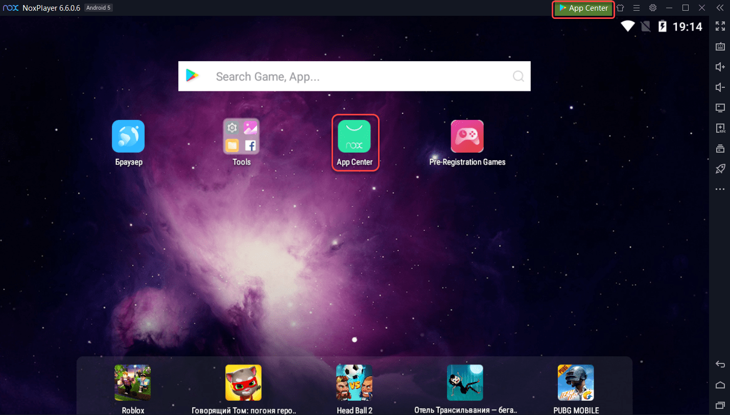 В окне эмулятора нажимаем значок App Center (либо кнопку с таким же названием в верхнем меню).