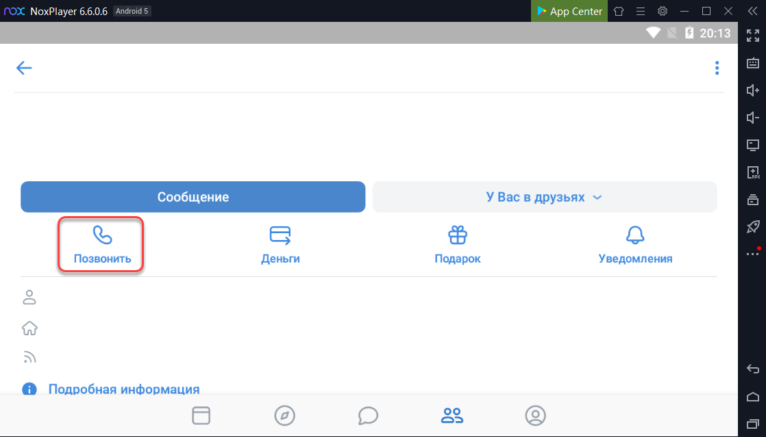 Открываем интернет-площадку через любой браузер на устройстве и переходим на личную страничку с конкретным человеком. Под основной фотографией профиля должна располагаться графа «Позвонить». Как вы уже могли догадаться, именно по ней и потребуется щелкнуть левой клавишей мышки.