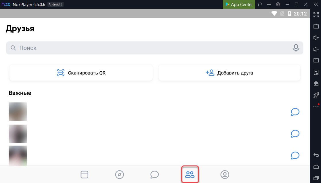 В появившемся меню обращаем внимание на символ, изображающий двух человек. При нажатии на него становится доступным список ваших друзей