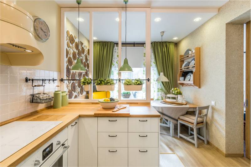Особенно такое решение целесообразно в кухне-столовой, гостиной-столовой, квартире-студии и там, где объединено несколько помещений