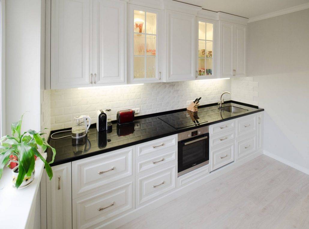 Высота и глубина шкафов в прямой кухне