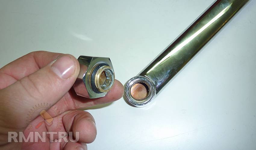 Не перекрывается вода на гусак либо душ. Обстоятельство — износ прокладок либо, что не редкость куда чаще, разрушение фиксирующего одну из них болтика. Неприятность, как несложно додуматься, устраняется заменой прокладки либо болта.
