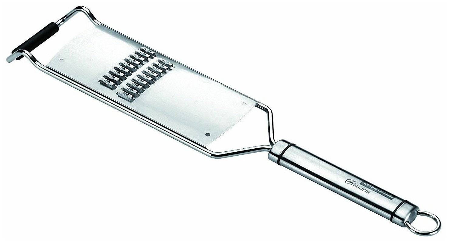 Одногранный универсальный прибор из нержавеющей стали. Произведен в Китае. Без труда измельчает шоколад, цедру цитрусовых, чеснок, орехи. Обладает специальным сертификатом, гарантирующим безопасное взаимодействие с продуктами. Нельзя мыть в посудомоечной машине.
