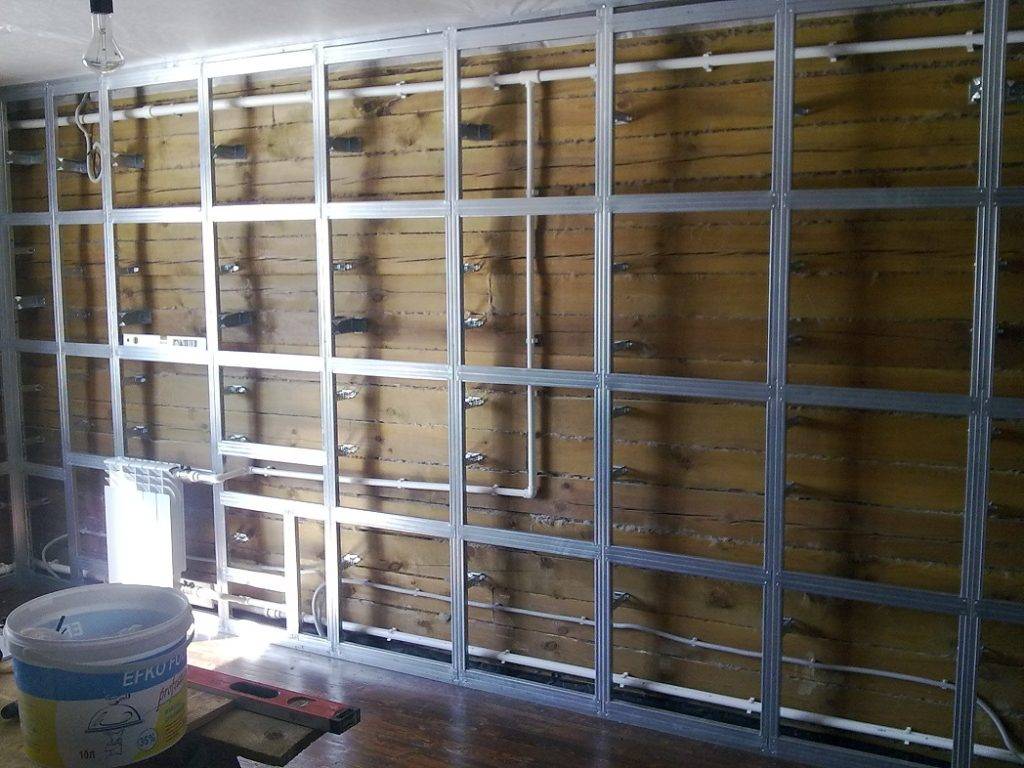 - При выравнивании стен или монтаже перегородок между точками крепления делают шаг в 25–35 см. Его уменьшают до 15–20 см, если в дальнейшем планируется облицовка поверхности тяжелым материалом, например керамической плиткой.