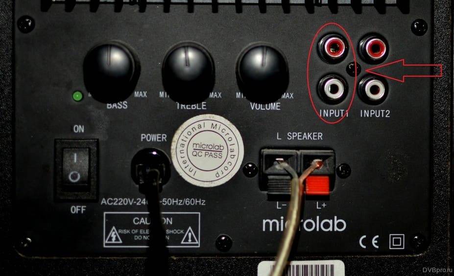 Проводной метод подключения саундсистемы выполняется в два этапа: