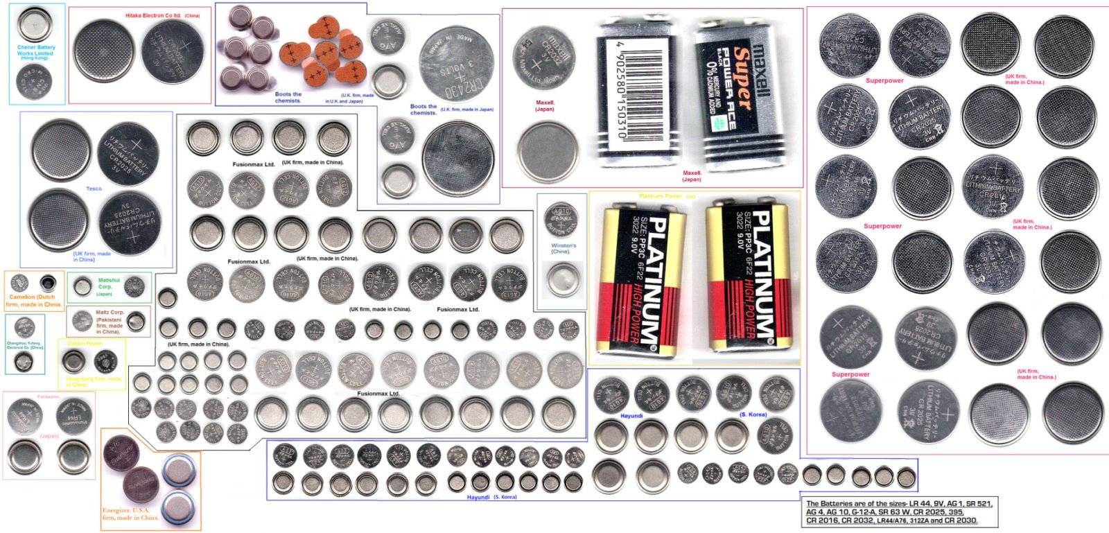 Данные виды источников питания могут называть плоскими, сплюснутыми, дисковыми, кнопками и т.д. Они бывают разными по химическому составу. В действительности их очень много и на нашем сайте вы сможете отыскать более 80% всех их видов. Ниже приводим самые основные их представители.