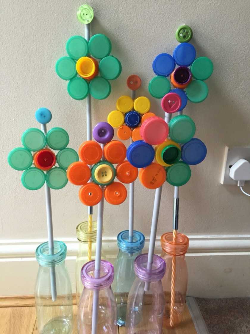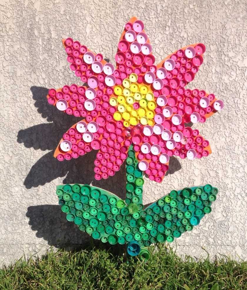 А еще из пробок от пластиковых бутылок можно сделать красивые цветы. Это не сложно: