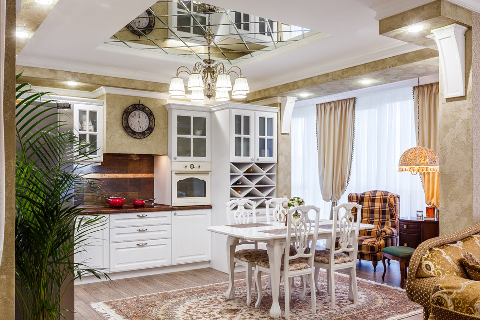 Прояснив для себя, какая именно атмосфера будет создаваться в гостиной, можно переходить к реализации потолочной отделки.